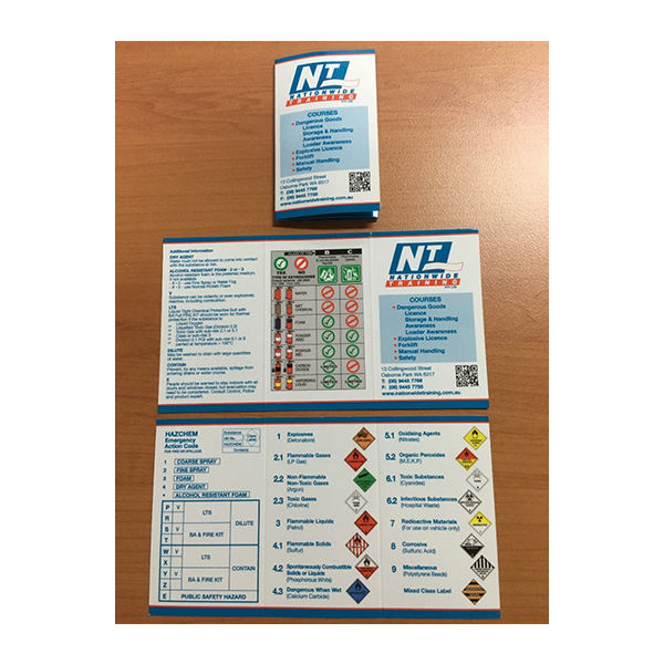 The Hazchem Action Card combines hazchem emergency action code for the extinguishing of fires and suppression of gases and the PPE required by FESA. Dangerous Goods Class labels and a fire extinguisher guide all in one quick reference tool that can fit in your wallet or pocket.